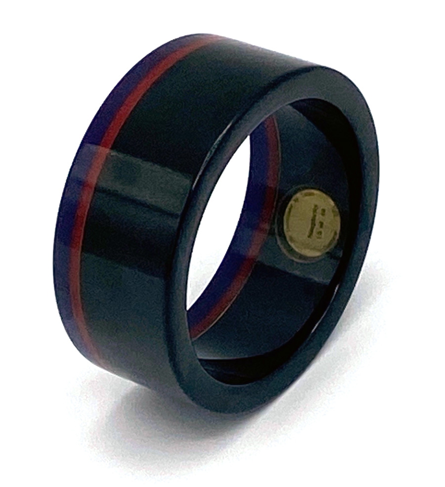I have the signed provenance certificates for the Black numbers 1 and 2. Penny Lains promised to send the paperwork for the red bangle, but either that never happened, or was misplaced. Outside diameter about 3 7/16, inside diameter about 2 5/8, wall thickness about 3/8 inch, height about 3/16 for the black bangles and 3/8 inches about for the red. Limitation number on inside stamped in. Price for set – $625