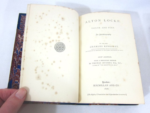 ALTON LOCKE, TAILOR AND POET. AN AUTOBIOGRAPHY – New Edition with a prefatory memoir by Thomas Hughes – Macmillan and Co., London, 437 pages with some light foxing