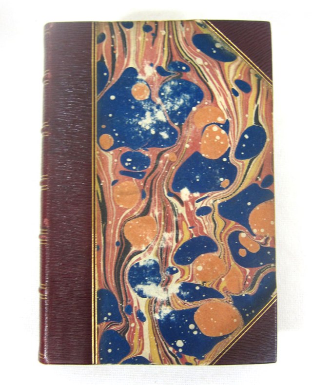 Published by Chapman and Hall, London, 1857, 415 pages. Nice clean and tight copy, 3/4 leather with marbled boards and endpapers, all edges gilt (AEG). Some light rubbing on the marbled boards. Bound by R. Nelson, Glascow.