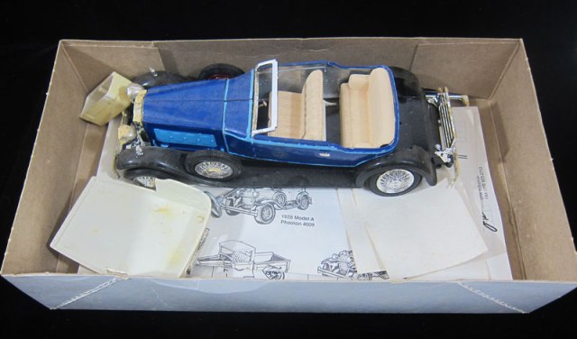 Around 1980, Hubley was acquired by CBS Toys which later sold many dies to Ertl and Scale Models, both of Dyersville, Iowa. Ertl has now stopped production of all of the original toy dies and molds purchased from Hubley. As a result, all remaining Hubley/Ertl metal kits are getting harder to find unmade and in the box. The kits that came home in BLUE BELLE above, and are for sale below are from the Hubley dies, but made by and boxed by Scale Models of Dyersville, Iowa.