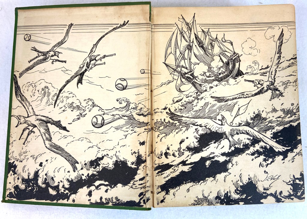 PIRATES IN OZ – RUTH PLUMLY THOMPSON – FIRST EDITION – “FOUNDED ON AND CONTINUING THE FAMOUS OZ STORIES BY L. FRANK BAUM – ROYAL HISTORIAN OF OZ.” Reilly & Lee, Chicago – (1931), illustrated by John R. Neill. Twelve (12) color plates (all present). First state binding with Reilly & Lee in boldface. NICE CLEAN AND TIGHT COPY — (Hanff, Greene, Martin, Greene, and Haff – BIBLIOGRAPHICA OZIANA pages 97-98). My apologies for the shadow in my images at the lower right corner – lights were set incorrectly.