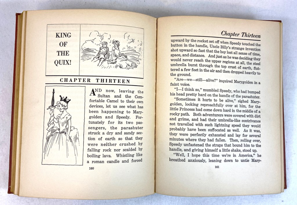 THE WONDERFUL WIZARD OF OZ – Geo. M. Hill Co., Chicago and New York, 1900 – a first edition with faults, having these first edition points – page 14 “low wail on…” — page 81 “peices” — page 227 “While ton Woodman — colophon 11 lines in box. All plates present. Per Hanff – page 25 – “scrambled copies combining first and later states of the three compliments are often found.” I will be illustrating and pricing this to share with you. It is a copy that should be restored. As you know condition is important in value. This first Oz book can bring up to $15,000 to $30,000. Mine was not in that condition, and has been sold.